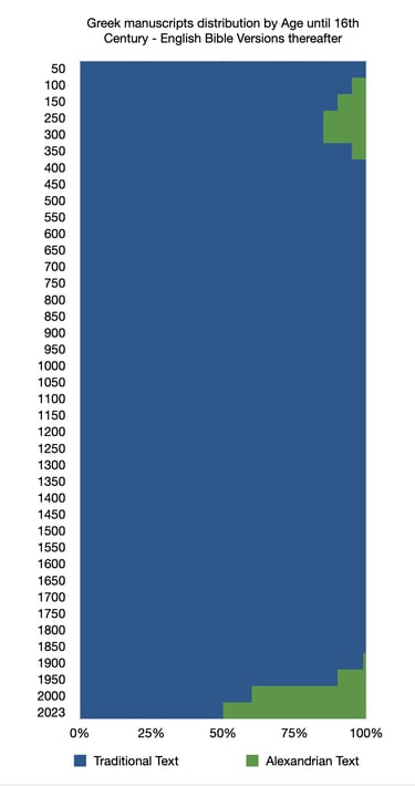 Involves modern arbitrary methods of creating constantly changing Greek Manuscripts.
